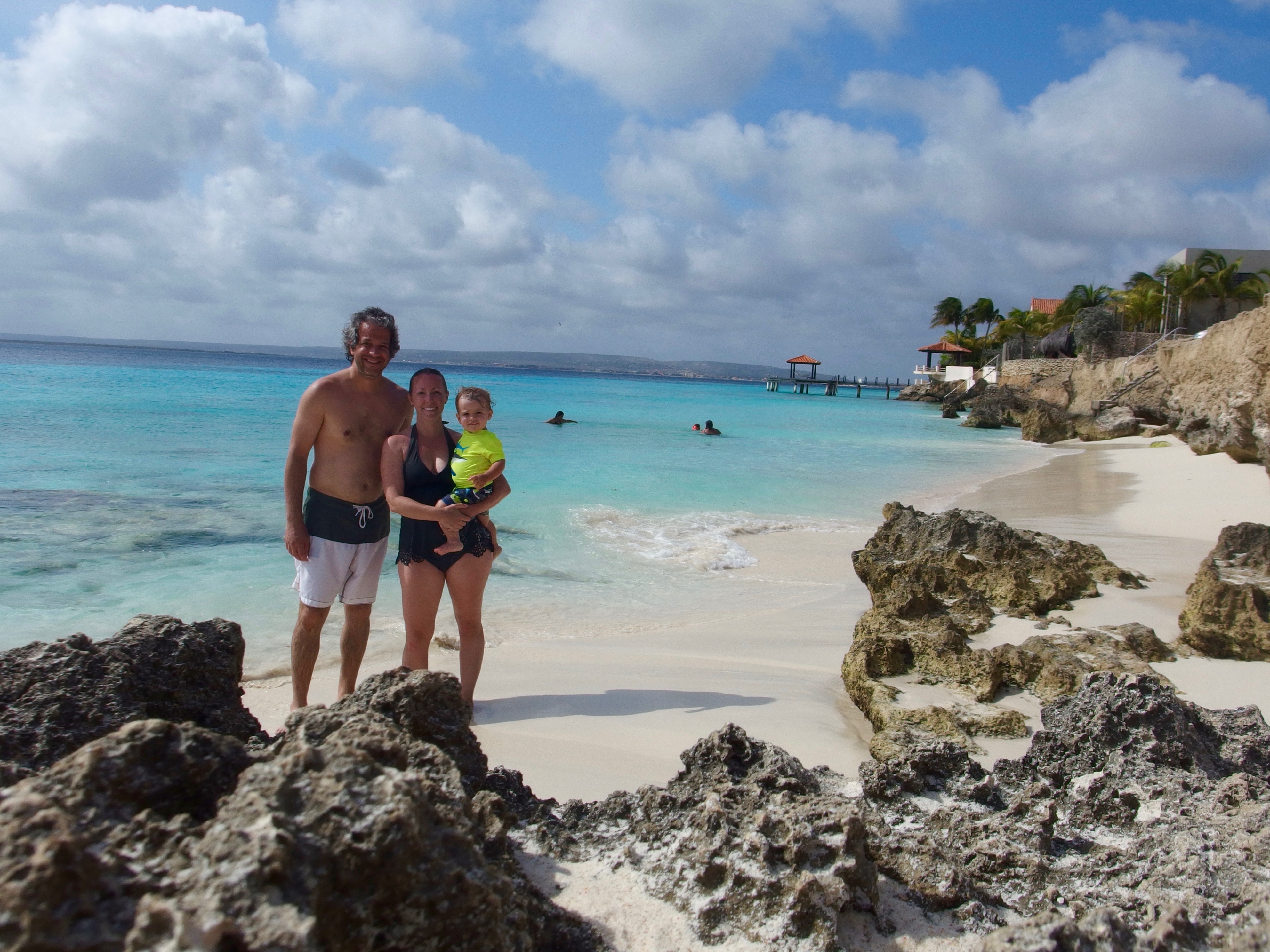 We hopped in the truck and headed across to the other side of the island, Lac Bay. There was a beach that was attached to a resort called Sorobon Beach. Next to the resort, there was a school for windsurfing. Pa said I was too small for classes. It sure did look like fun. The water was warm and calm for the first few hundred feet. We had to go out pretty far to get to deeper waters. It was nice, though. I could walk on my own, splashing Ma and Pa as often as I could. After a long dip in the water, we headed back to the sand where it was time to build some sand castles. It was not the greatest beach, but it was a good start.
