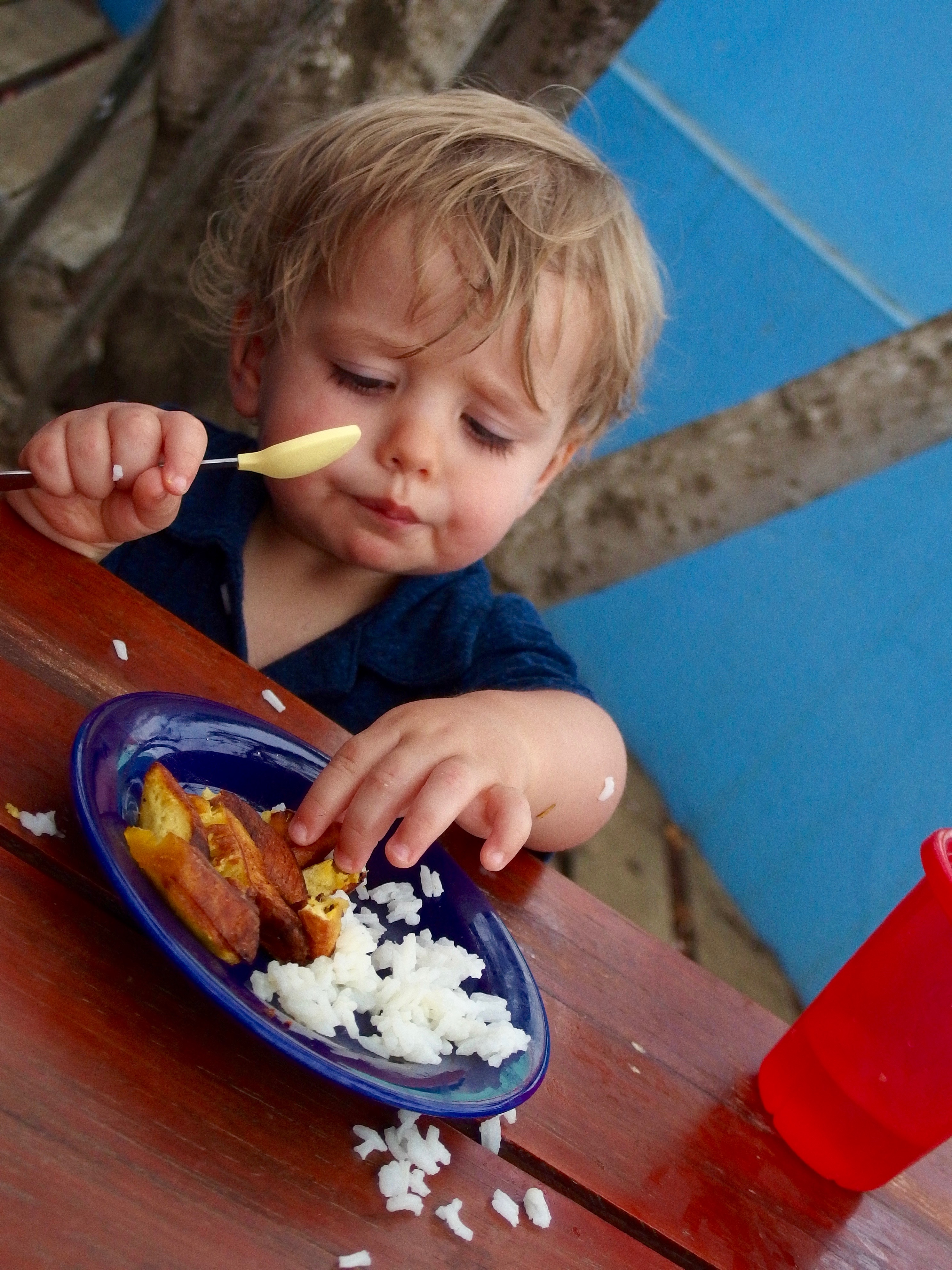 We would have breakfast on the patio every morning in our PJ’s. It was the perfect way to start each day. But the best meal we had at home was some marinated chicken that Pa cooked on the grill. He does a pretty good job of cooking over a fire and this was no different. We had the chicken with some rice and fried ripe plantains. I think I could eat those plantains every single day!